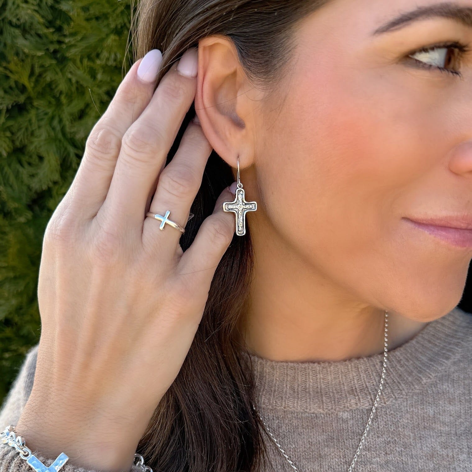 A gentle reminder that we are never given just enough grace… but grace upon grace. These softly sculpted cross earrings shine in luminous sterling silver, their dimensional form reflecting light — and faith — from every angle. Artisan texture and graceful lines create a look that's both meaningful and beautifully wearable. Lightweight yet rich in symbolism, each cross measures approximately 22 x 16 mm. They're perfect for everyday encouragement or heartfelt gifting.