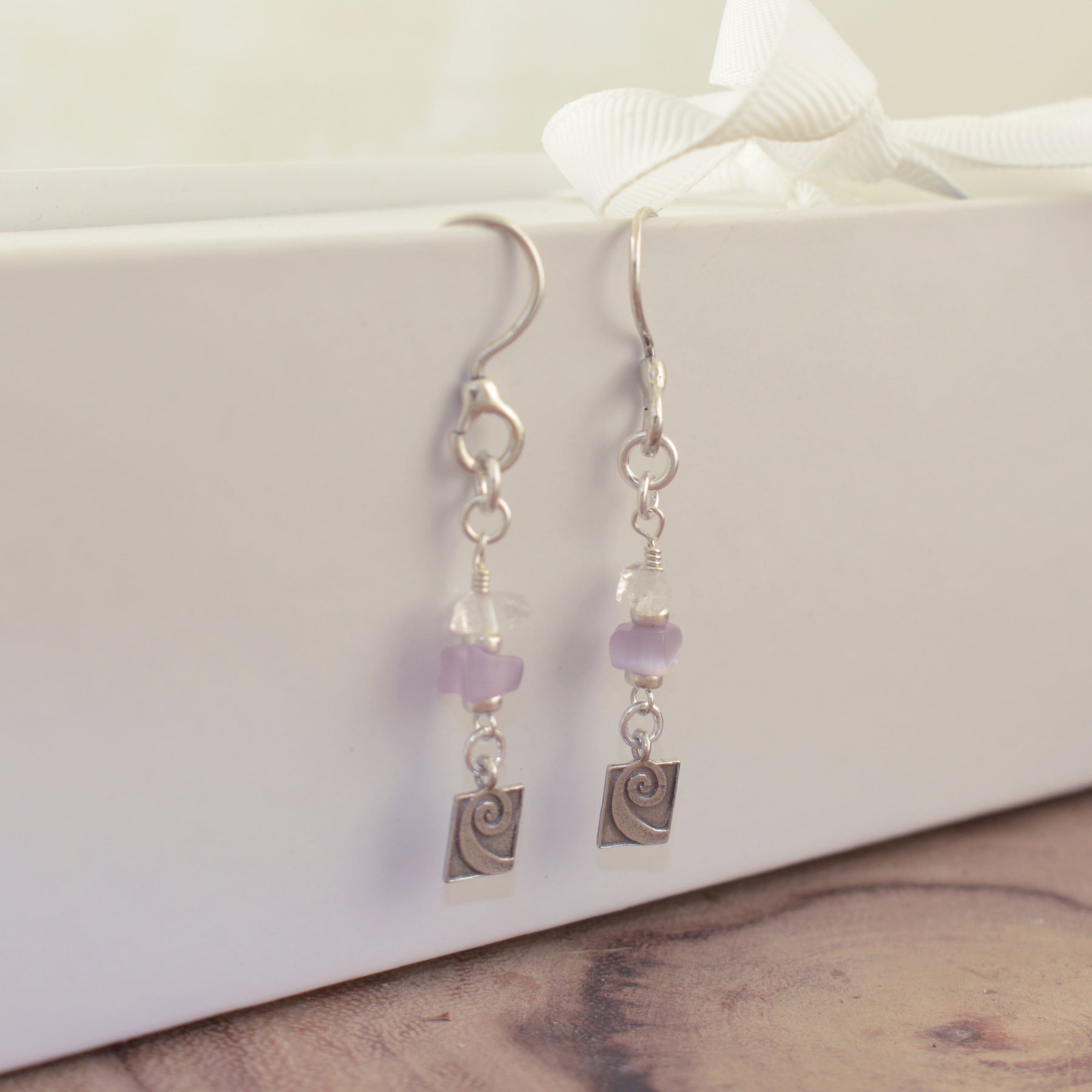 Soft lavender jade flows beneath a clear crystal accent, creating a look that feels both tranquil and luminous. Finished with an Inspiranza Designs silver swirl. Lavender Current captures the gentle movement of water and light — graceful, feminine, and effortlessly refined.
