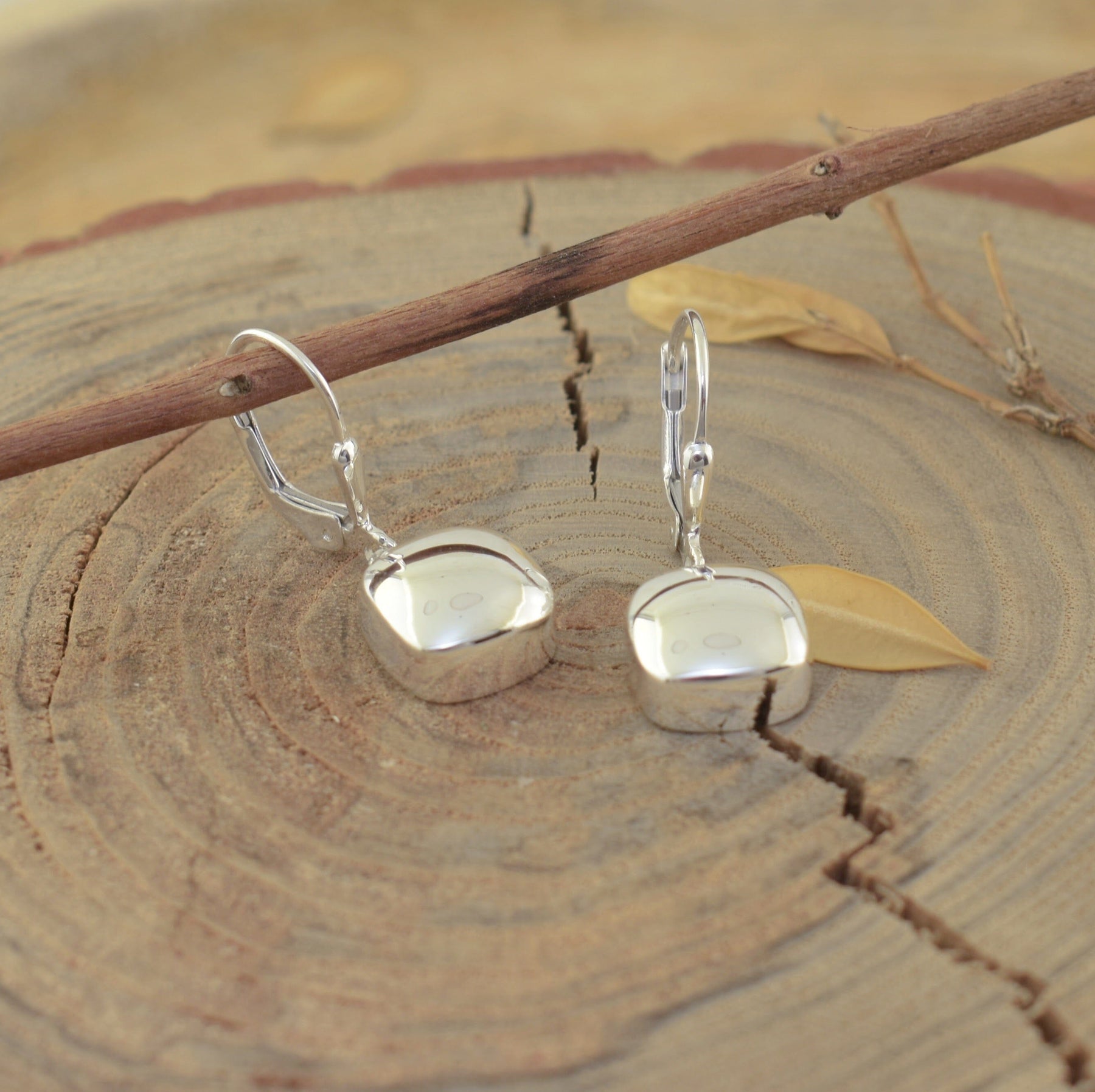 Fall hard for the sleek shine of Cushion Crush. These silver cushion-shaped drops (measuring about 10mm) bring bold curves and polished sass, making them the ultimate everyday statement. Finished with secure leverback closures for comfort and ease, they swing with confidence—ready to dress up your denim or make a statement on a night out.