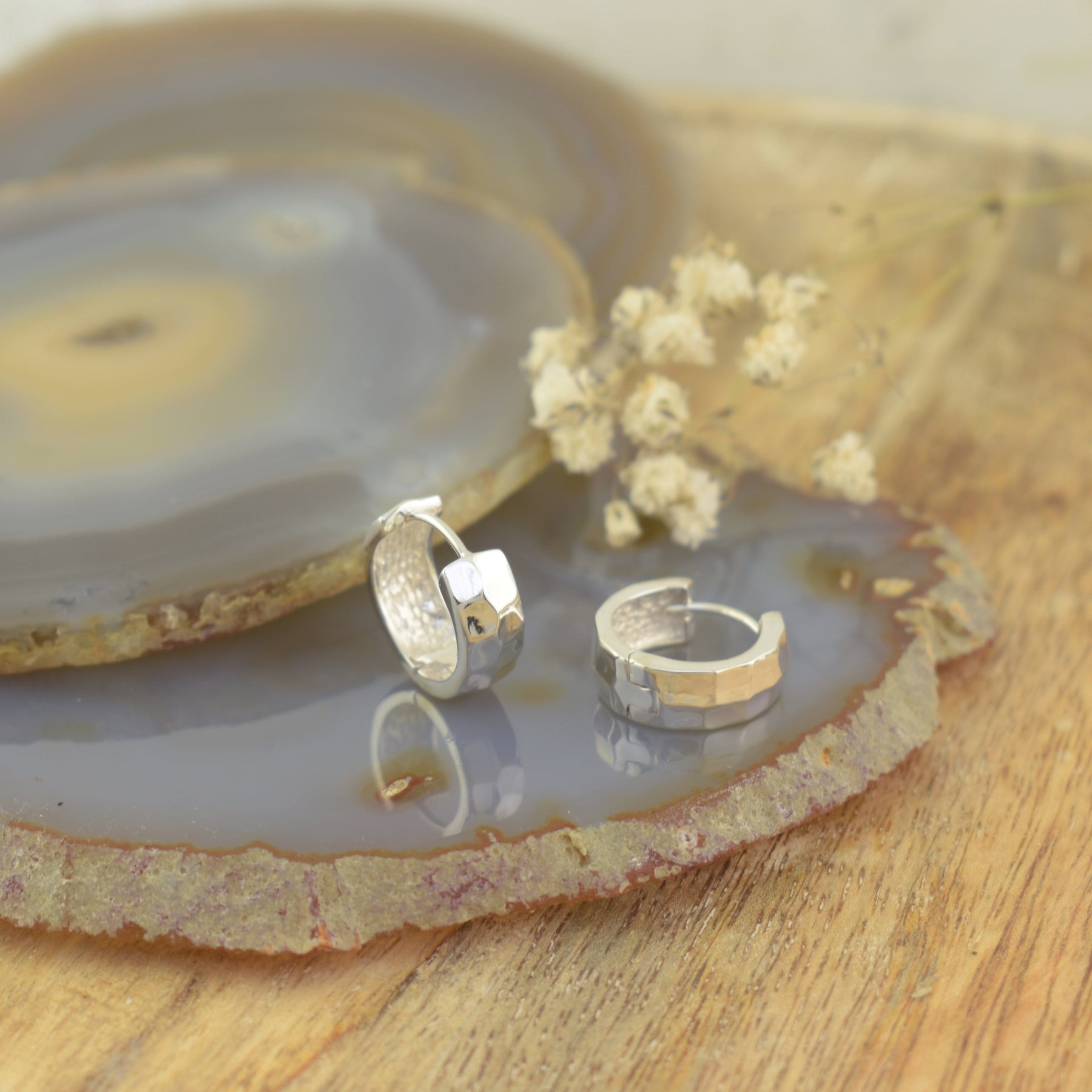 The Bold Shine Huggies feature a smooth, sculptural silhouette with softly faceted surfaces that catch the light from every angle. Designed to hug the ear comfortably, these polished earrings bring confident shine to everyday wear—effortless, modern, and endlessly versatile.