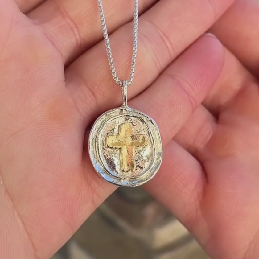 Carry a quiet reminder of faith wherever you go with the Seal of Hope Necklace. Designed with an organic, hand-pressed look, this wax-seal–style pendant (20x18mm) frames a simple cross at its center—imperfect in shape, yet perfect in meaning. Its rustic detail gives a timeless, worn-in charm, as if it's a treasured token passed down with love. Wear it close as a symbol of grace, strength, and the hope that anchors the heart.