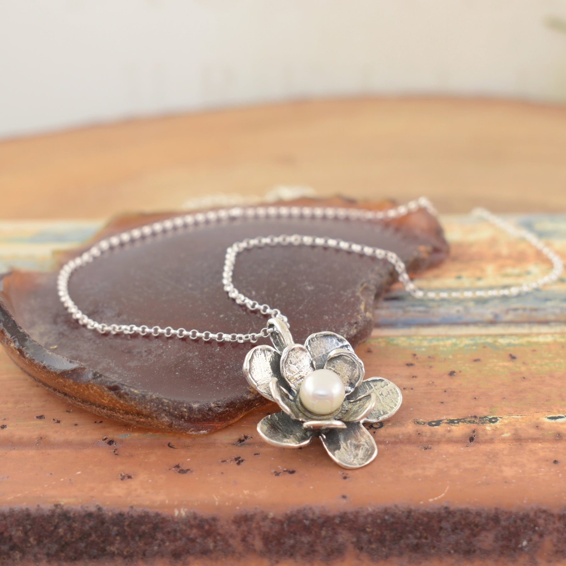 hand crafted sterling silver flower necklace